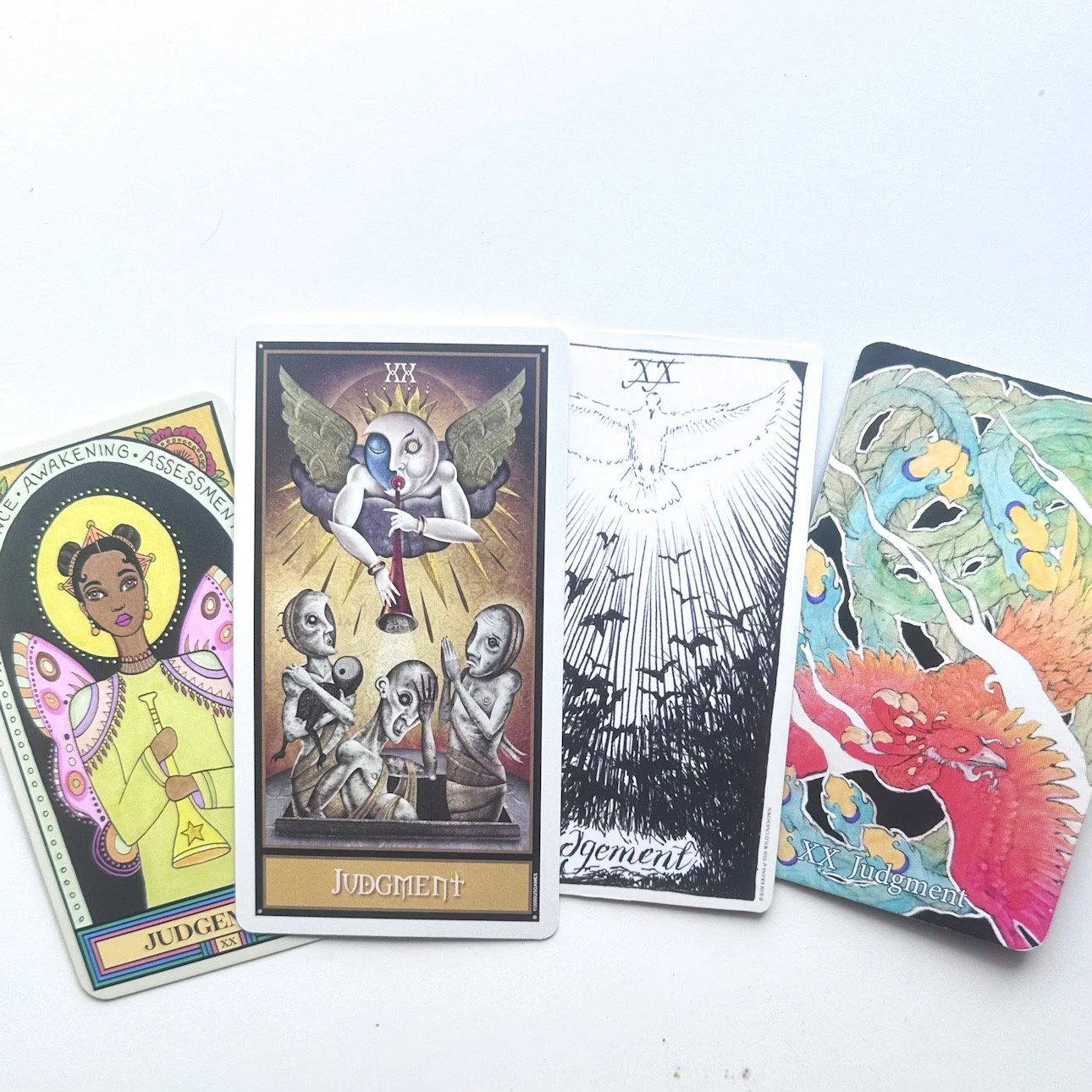 This is the card of starting over, wiser, more substantial, and braver. This card heralds metamorphosis, reflecting our conscious desire to change and grow. And while it can still be scary — and we may feel some resistance — ultimately, this is for our highest good. Judgment may prompt you to create space for understanding and forgiveness and finally put the past to rest. This card may appear when seeking reconciliation in a problematic relationship or situation. It could be your own divine wake-up call, a reminder to choose wisely, be discerning, and use your careful judgment in every situation. At its core, this is a card of spiritual awakening and personal realizations. It’s that feeling of coming home as you finally step onto the right path, finally step up to do what you’re meant to do, and answer the call from your soul.