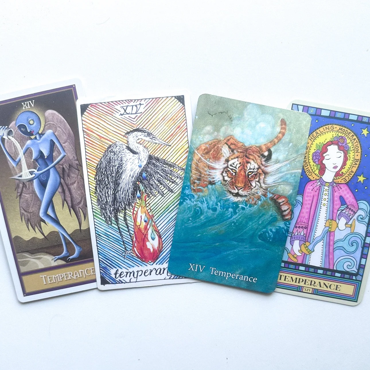 After the polarity in the Lovers card we find another variation in Temperance. The word comes from the Latin temperare meaning “to mix” — it’s moving in with your lover, fusing two individual lives to make something new. It’s the middle road, the third option,the synthesis of two ideologies, the embodiment of yin and yang. Balance as a concept appears often in the tarot — here we’re being advised to keep our heads and seek emotional balance. Temperance could be viewed as “everything in moderation”, that hackneyed old phrase that sounds boring at first but might be the key to surviving this crazy ride. There’s clearly a reason Temperance sits between Death and the Devil, Temperance is calming, soothing, a balm for what ails us. Ask yourself: where am I out of balance here? How could some moderation help this situation?
