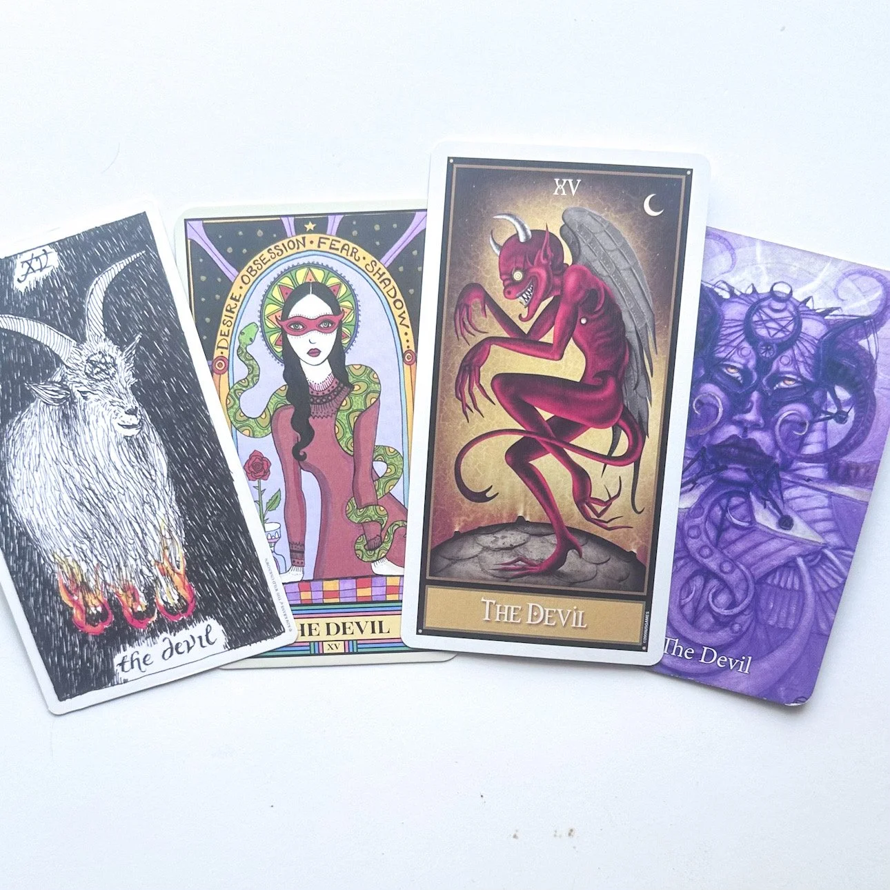 As an archetype, the Devil represents temptation and our very human inclination to do stuff that’s bad for us. He’s that extra glass of wine the night before a big meeting and the entire chocolate cake when you only wanted a slice. When in shadow, the Devil represents our indulgences and vices, yes indeed, but he’s also a reminder that we need to let our hair down once in a while. If we keep ourselves so tightly wound, denying ourselves any pleasures, we’ll inevitably unravel when we loosen our grip. In many ways, The Devil is yet another card about balance. He’ll show up when you need to let some steam out of the pressure cooker! He may also show his face when your limits are being tested. We may be choosing to ignore what’s right in front of us. We can make better decisions — no evil thing is out there, making us do what we do. By taking responsibility for our actions, we can enjoy the pleasures of life without destroying ourselves in the process.